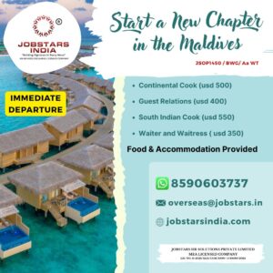 JSOP1450 / BWG/ Aa WT – MALDIVES – CONTINENTAL COOK,GUEST RELATIONS, SOUTH INDIAN COOK,WAITER AND WAITRESS
