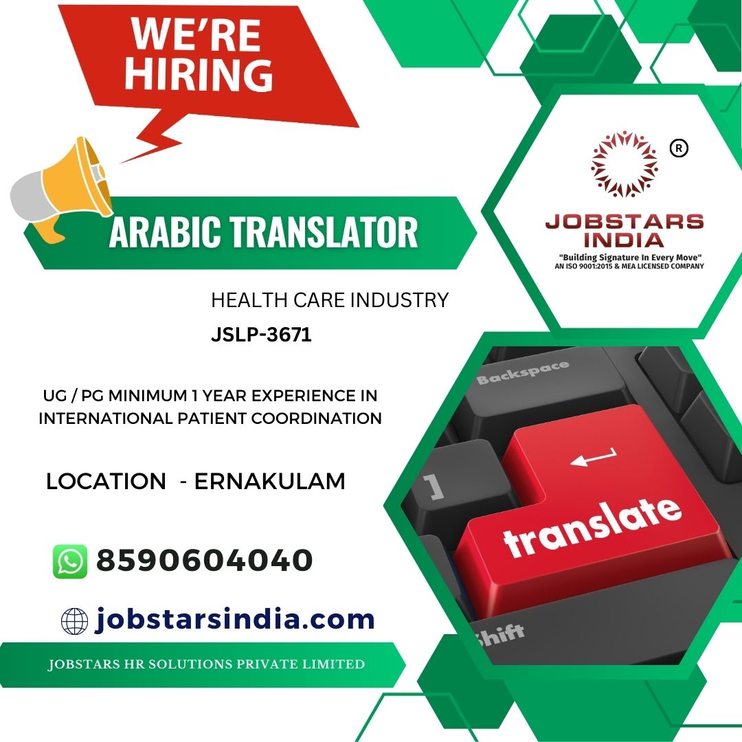 Job Code: JSLP-3671Industry: HealthcareLocation: Ernakulam Job Title: Arabic Translator Job Description: An Arabic Translator is responsible for converting written or spoken material from