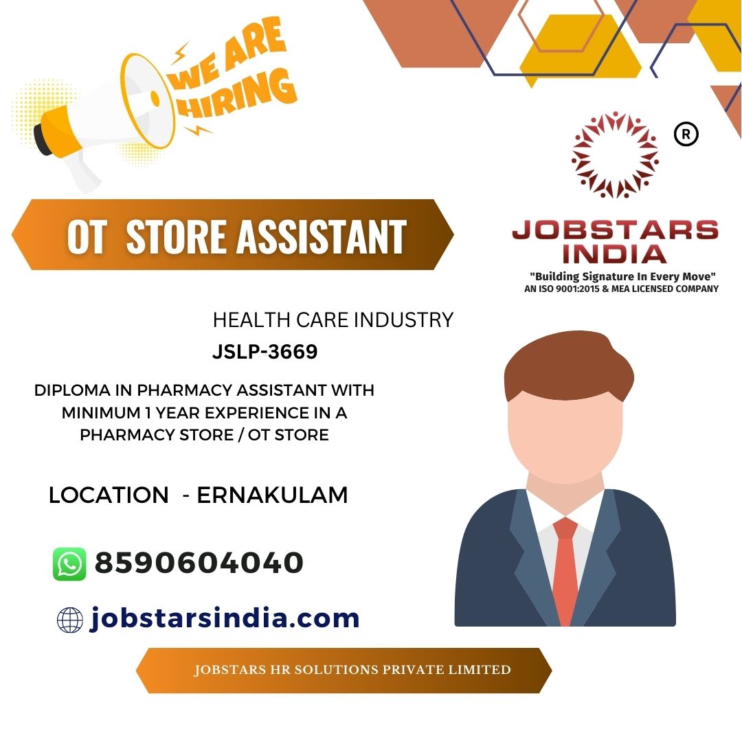 Job Code: JSLP-3669Industry: HealthcareLocation: Ernakulam Job Title: OT Store Assistant Job Description: The OT Store Assistant is responsible for supporting the smooth operation