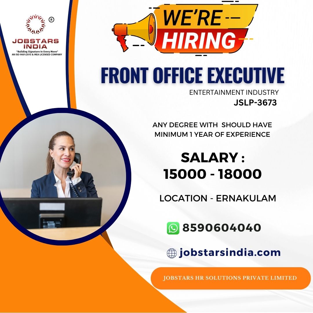Job Code: JSLP-3673Industry: Entertainment Location: Ernakulam Job Title: Front Office Executive Job Description: The Front Office Executive serves as the first point of contact