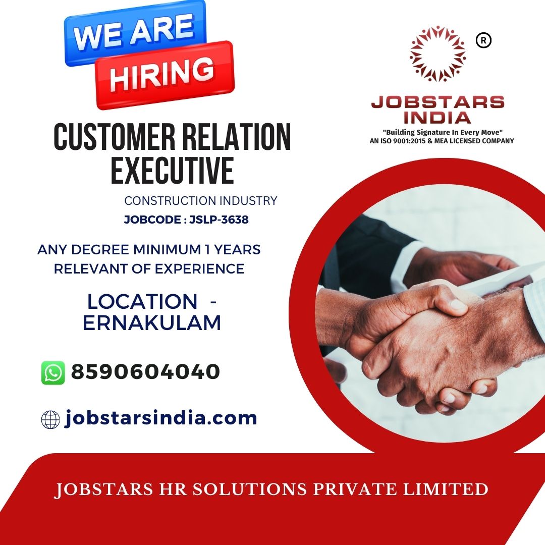 Job Code: JSLP-3638Industry: ConstructionLocation: Ernakulam Job Title: Customer Relation Executive Job Description: The Customer Relation Executive is responsible for managing customer interactions to