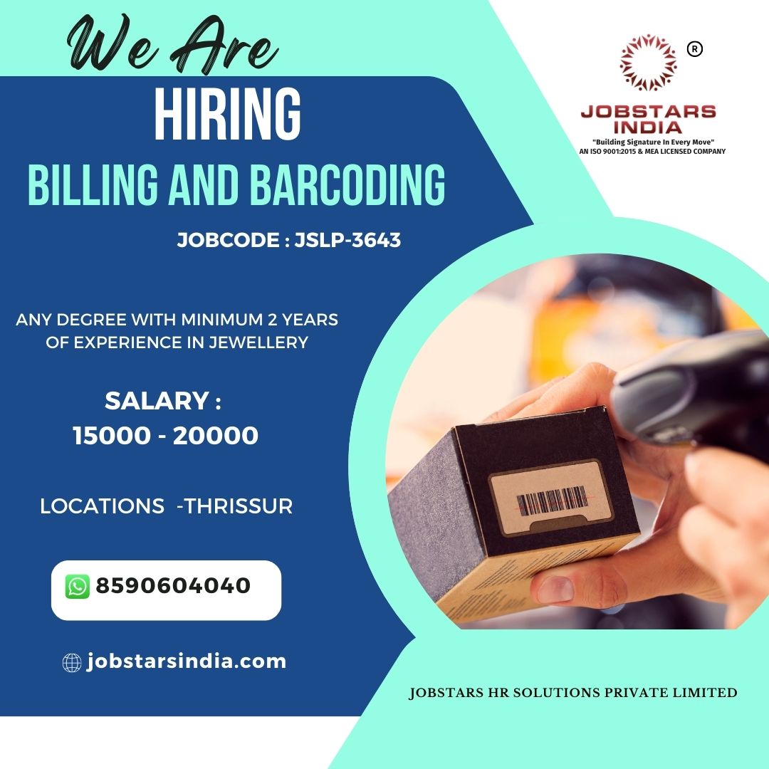 Job Code: JSLP-3643Location: Thrissur Job Title: Billing and Barcoding Job Description: A Billing and Barcoding is responsible for ensuring the accurate processing of