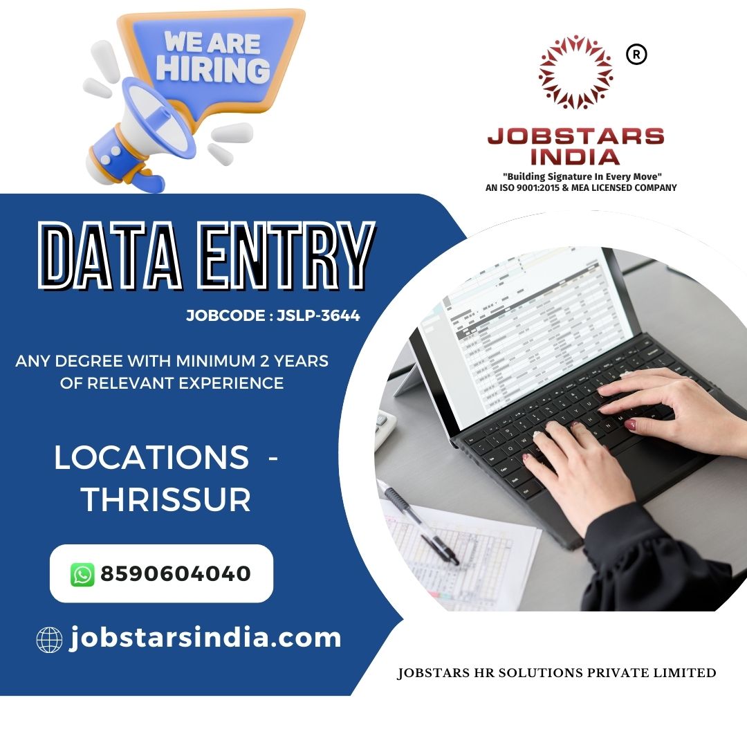 Job Code: JSLP-3644Location: Thrissur Job Title: Data Entry Job Description: A Data Entry Specialist is responsible for accurately inputting, updating, and managing