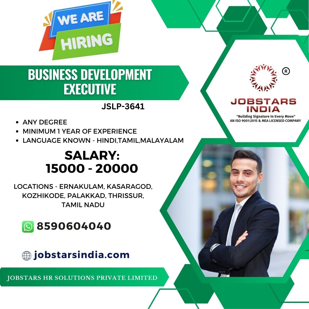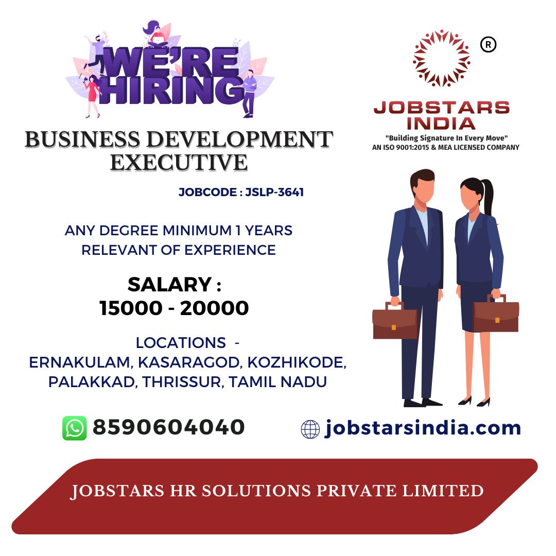 Job Code: JSLP-3641Location: Ernakulam, Kasaragod, Kozhikode, Palakkad, Thrissur,, Tamil Nadu Job Title: Business Development Executive Job Description: The Business Development Executive is